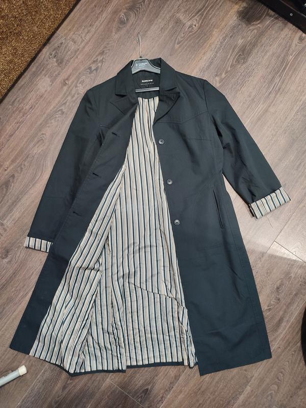 Плащ тренч Only, в темно синьому глибокому кольорі, реальний колір, як на фото з біркою на комірці, колір рівний без потертостей, простий , лаконічний за кроєм, ледь-ледь приталений, хорошої щільності тканина, склад тканини вказано на бірці, тримає форму, не минеться, акцентна підкладка, розмір вказано L, маломірить, скоріше на S, можливо, навіть менше, як овер, то , хто, як любить. Стан чудовий. Фото на тілі не має. Робіть вибір свідомо, повернення не має. Заміри: плечі 43,5 см, відстань від підмишки до підмишки 52 см, довжина рукава 64 см, це довжина рукава не підключеного, можна підкотити при необхідності, акцентний манжет, довжина по спині 104 см.