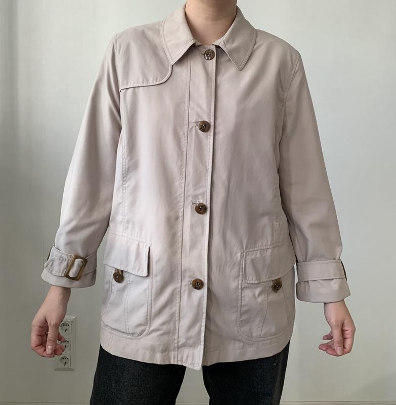 Укороченный тренч молочного цвета Новый! С бумажной биркой Размер Л Легкий, имеет подклад Длина 71 см, ширина плеч 43 см, длина рукава 58 см, полуобхват груди 56 см Одето на размер Л, рост 167