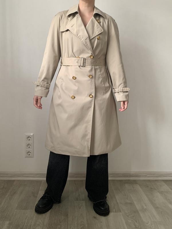 Качественный, плотный тренч На размер от S до Л Длина 109 см, длина рукава от горловины 77 см, полуобхват груди 54 см Стан - идеальный Одето на размер Л, рост 167