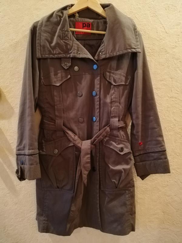 Плащ на холодную осень, есть воротник который поднимается, подкладе, двубортное, на рукавах манжеты, длинна 92см,плечи 48см,рукава 61см,+7 см манжеты, грудь 42см.