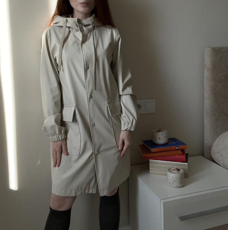 Плащ — дощовик ZARA Застібається на кнопки Має 2 дуже великі кишені Потертість всередині там де бірочка, видно на фото.