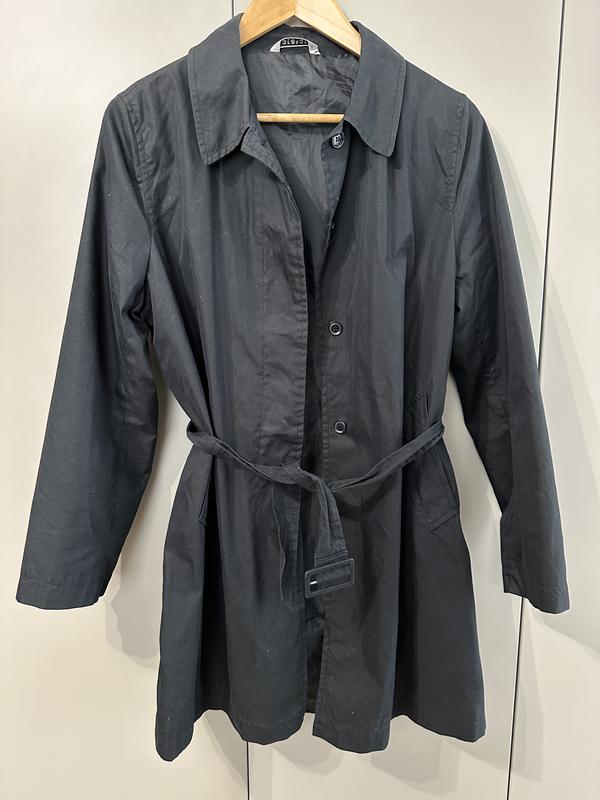 Тренч George Размер S. Цвет черный, два боковых кармана, пояс. Состояние отличное. Замеры: Плечи - 50 см Полу обхват груди - 51 см Рукав - 59 см Длина - 87 см