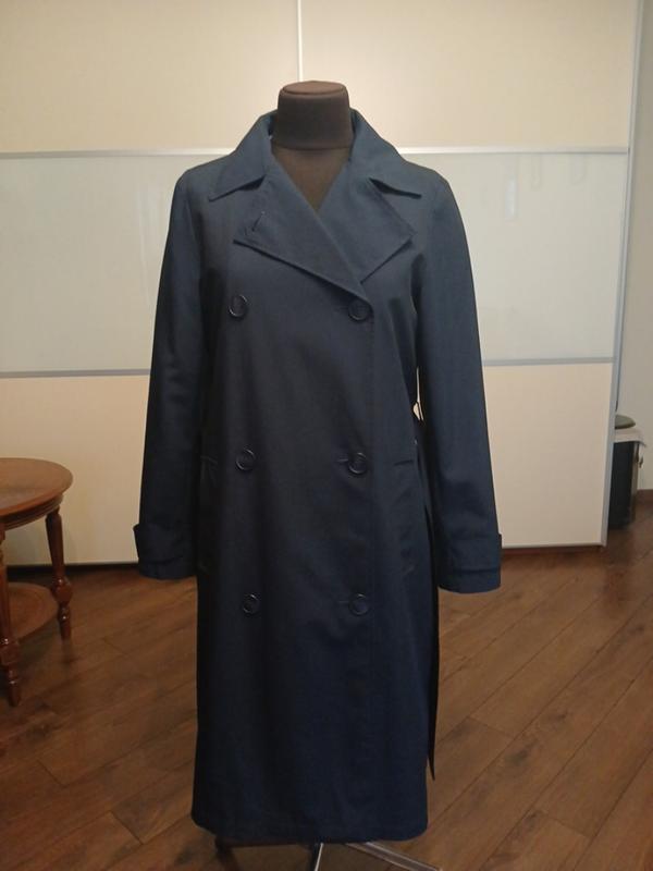 Классический плащ тренч в темно синем цвете. Размер 12. Длина 106 см, пог 55 см, плечи 42 см, рукав 62 см.