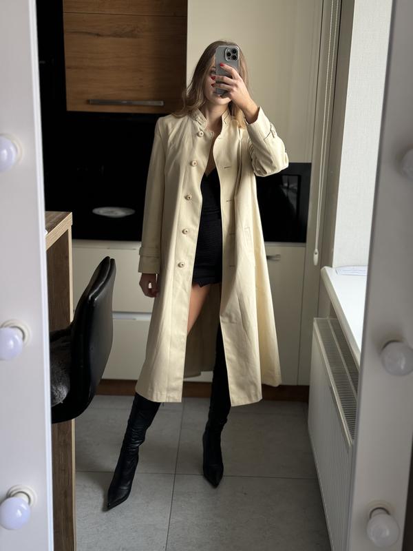 Стильная итальянское винтажное пальто плащ тренч бежевый размер 42 в стиле mango