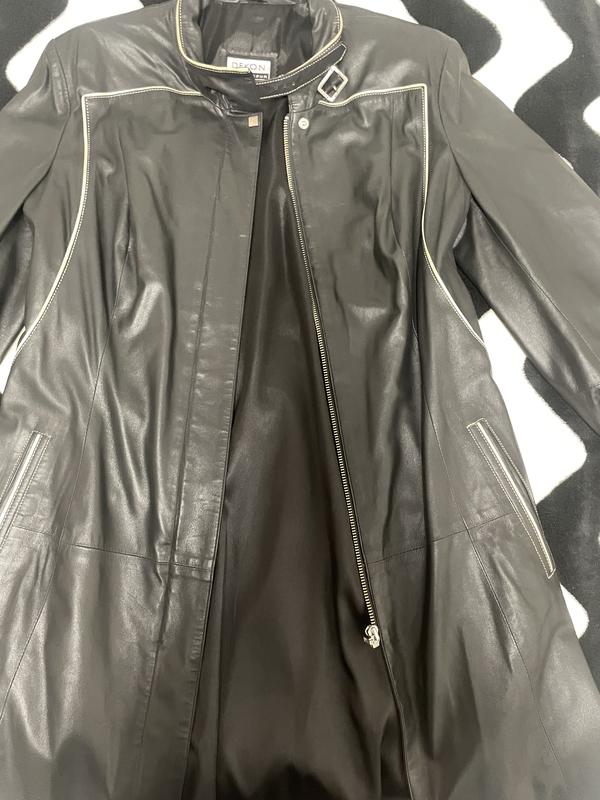 Шкіряний тоненький плащ на підкладці від на плечі є маленький нюансик.фото