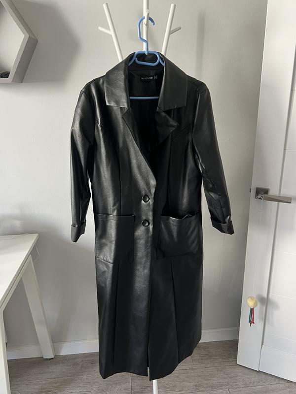Черный кожаный плащ в идеальном состоянии бренд Prettylitlething. Размер S. С двумя карманами и ремнем.