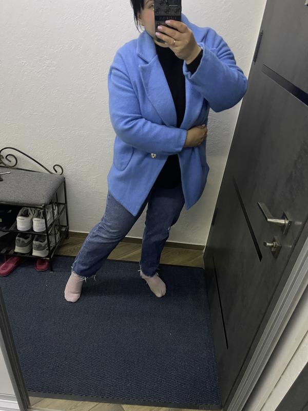 Красивый плащ голубой теплый на застежках. В размере ххl Параметры: объем груди 165 см Объем талии 121см Длина внешнего рукава 51.5 см Длина внутреннего рукава 40 см Длина плаща 88 см по зади он удлинен Длина плаща с переда 84 см
