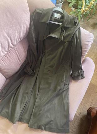 Тренч zara під замш, колір хакі, середньої довжини, на запАх з поясом