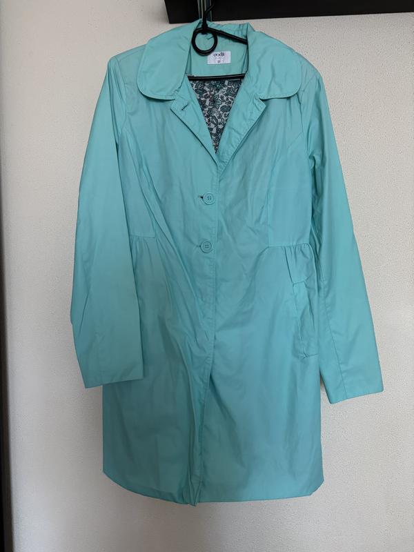 Пальто бирюзового цвета, очень приятное на ощупь, в почти идеальном состоянии одевалась 1-3 раза. (170/42). Длина 88см Пог 50 Поб 55 Пот 42 Рукав 62
