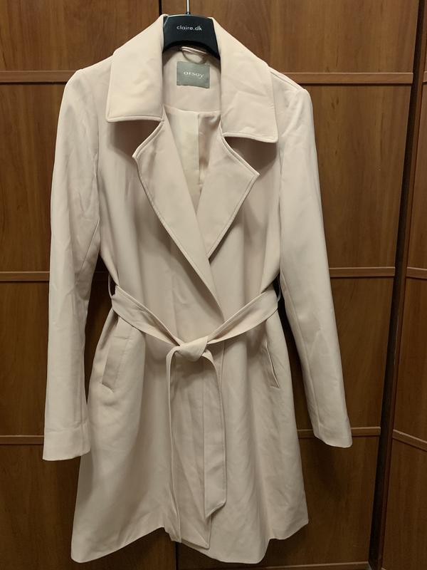Плащ жіночий, колір пастельно розовий, Orsay 100% поліестер, тканина мʼяка та приємна на дотик. Новий. Розмір на бірці EUR-36; SLO-38; M. П/ о плечі - 38 см Довжина - 93 см П/г - 50см Довжина рукава - 62 см.
