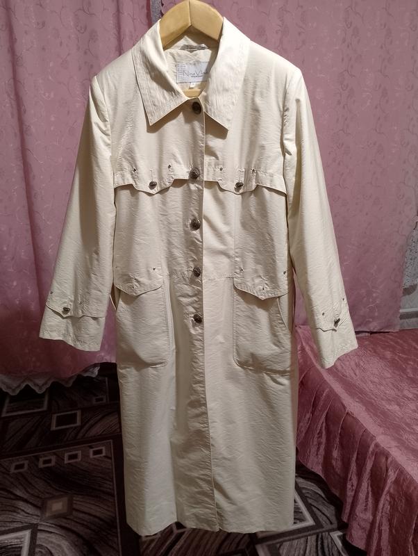 Женский плащ легкий, на рукаве (5-6 фото) есть незначительные черные точки. длина рукава 61см полуобхват по середині 51см плечи 43см общая длина 122 см размер 46