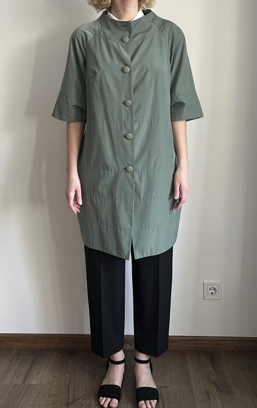 Тренч-плащ кольору стиглого зеленого яблука. Без утепления. Идеально на весну. Параметры: ПОГ 54 см ПОС 59 см Длина рукава: 50 см Длина изделия по спинке% 93 см Рост модели: 178 см