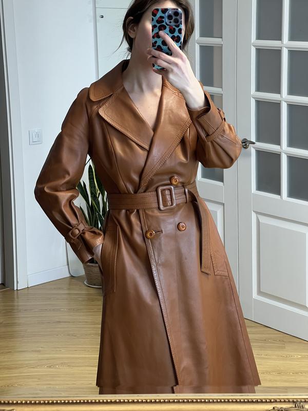 Вінтажний шкіряний тренч . Дуже якісна шкіра. Є не великі затерті частини, але не дуже багато і їх не дуже видно.