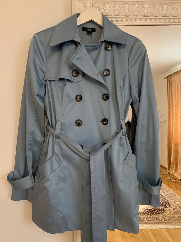 Плащ голубого цвета, размер М, без подкладки, на пуговицах