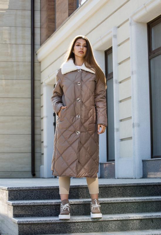 Зимнее пальто ПВ-314 капучино. Зимнее Пальто ПВ-314 выполнено из водоотталкивающей плащевки с воротником из искусственного меха. Благодаря текстуре и цвету, такая вещь является универсальной, поскольку сочетается с элементами одежды и обувью в любом стиле. Нежный и теплый образ гарантирован!