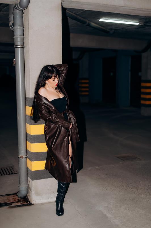Стильный шоколадный тренч из экокожи