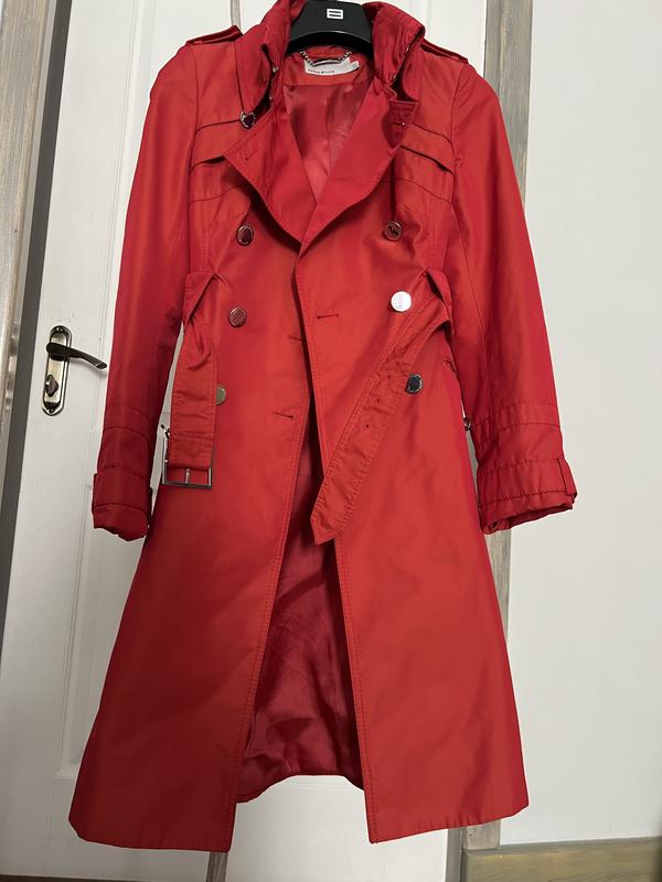 Плащ, Тренч. Красный цвет. Классический английский стиль, пуговицы с принтом бренда. Пояс . Приталена модель .