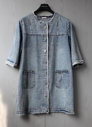Джинсовый плащ, платье OLKO В идеальном состоянии Размер M/L/XL (на фото манекен размер М) Обхват груди 116 см Обхват бедер 120 см Длин изделия 87 см Ширина плеча 14 см Рукав 3/4, длина 41 см Состав 100% хлопок