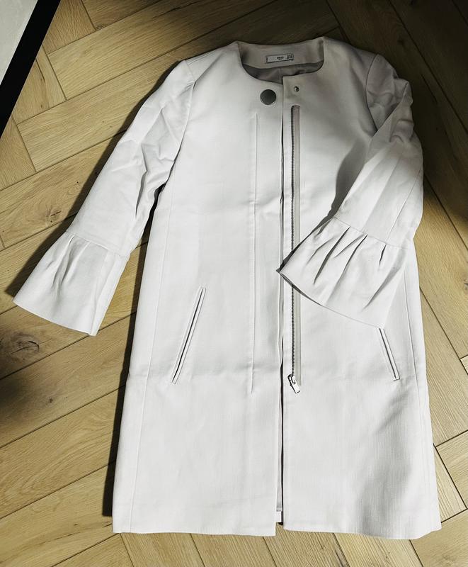 Стильный тренч манго, из плотной качественной ткани, рукавчики воланы, в нежном светлом цвете