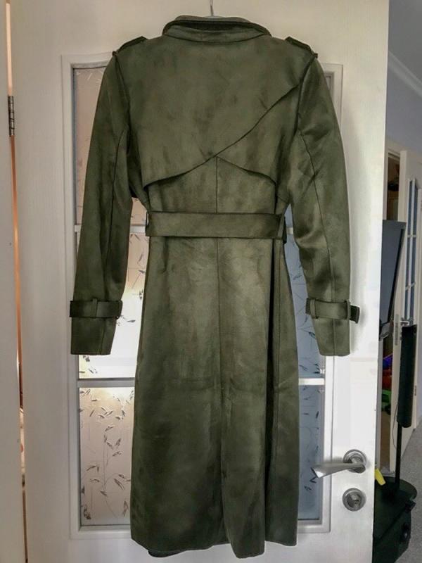 Брендовый тренч темно зеленого цвета под замш. Привезен из США. Пролет с размером. Полная Мка