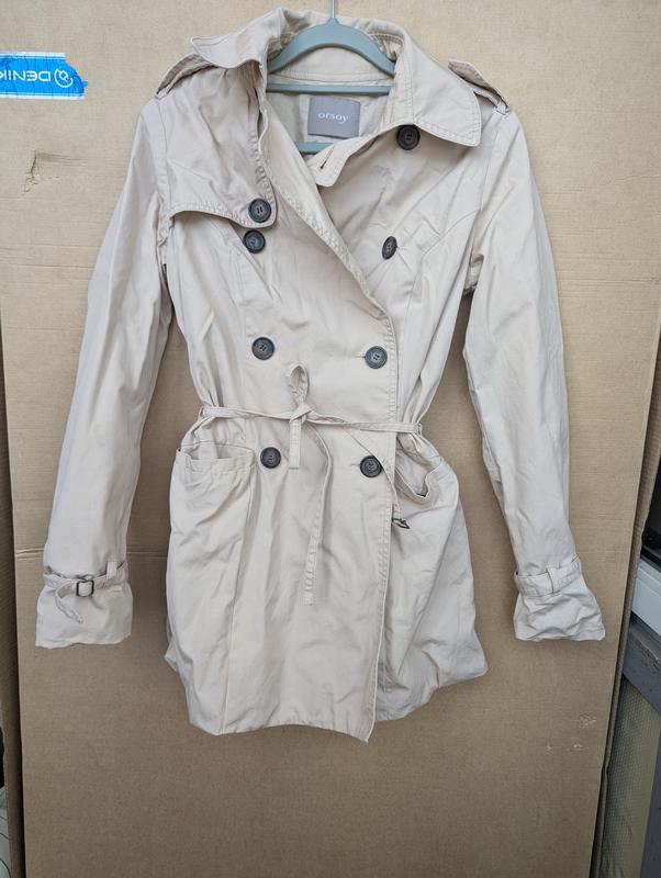Тренч средней длины из хлопка с подкладкой и с поясом В очень красивом состоянии, носился буквально несколько раз Размер 34/36 S Материал 100% хлопок (и верх и подкладка) Из нюансов - некоторые пуговки изнутри немножко "высотят" (последнее фото)