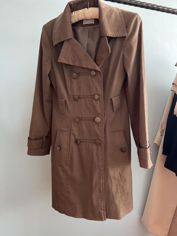 Стан хороший . Загубила пояс, тож ціна символічна .Колір бронза Довжина 90 рукав 59.5 плечі41 пог45.5 пот 42