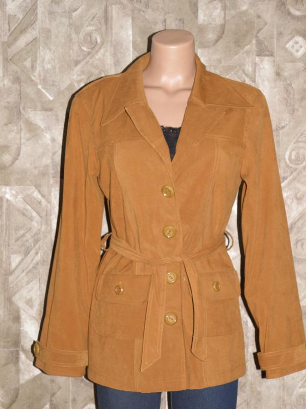 интересный плащик на высокую девушку длина - 72см, плечи - 46см длина рукава - 62см, дл.рукава от подмышки - 46см ПОГ - 52см, ПОТ - 45см ПО низа - 55см(еще разрез) дефектов нет, плащик в очень хорошем состоянии, из мягкой ткани, на подкладке, удлинялся рукав.