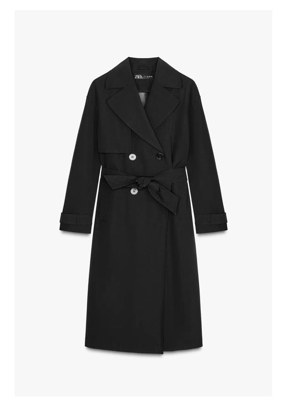 Водовідштовхувальний тренч з коміром-лацканом і довгими рукавами із застібкою на хлястики та ґудзики. Має передні прорізні кишені, двобортну застібку на ґудзики та пояс у тон. Тканина не промокає! ☝️ ЧОРНИЙ | 8073/038/800 У розмірі хс-с😻 ✅ При замовлені 2х речей доставка безкоштовна