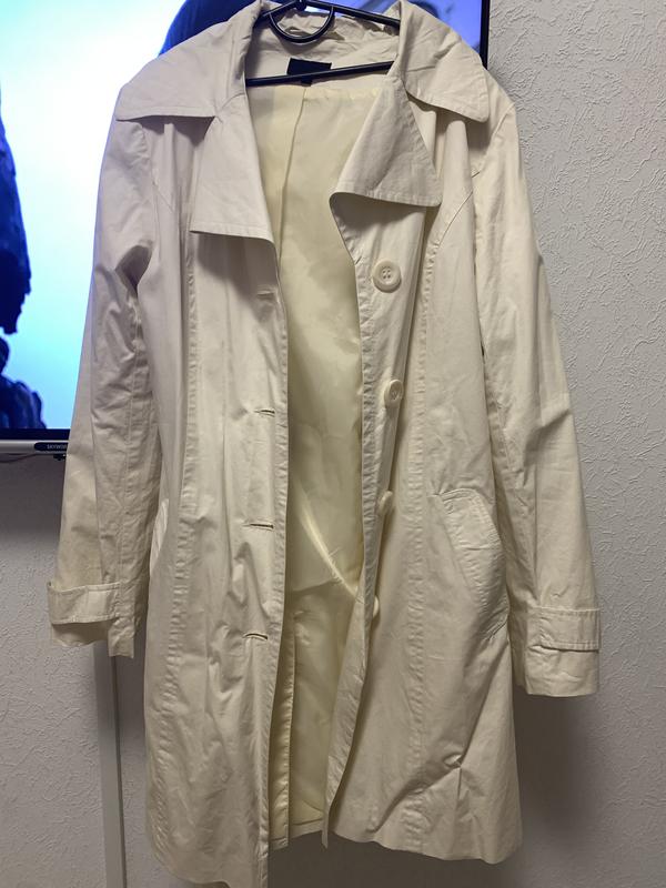 Жіночий бежевий тренч розмір S (36). Довжина нижче коліна, застібається на ґудзики, є пояс.
