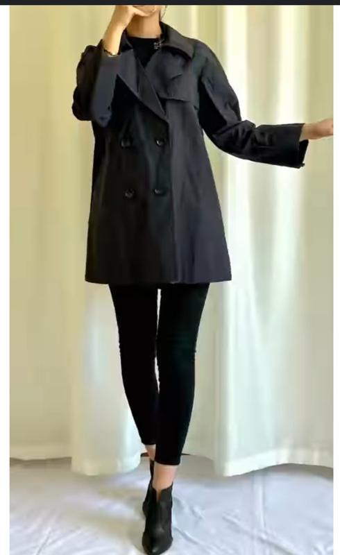 Класний двубортний плащ. На підкладці. По бокам глибокі кишені. Застібається спереду на ґудзики. Прямий крій, злегка приталений. Позаду розріз (треба розпороти). Колір чорний. Тканина верхня по типу котона, тягнеться. 100% поліестер. Розмір 8, підійде на С-М. Заміри: Плечі - 37см Груди напівобхват - 47см Талія - 42см Стегна напівобхват - 50см Рукав - 60см Довжина - 80см Абсолютно новий, без бірки! Загублений пасок! Відправка кожен день Нова і Укрпошта
