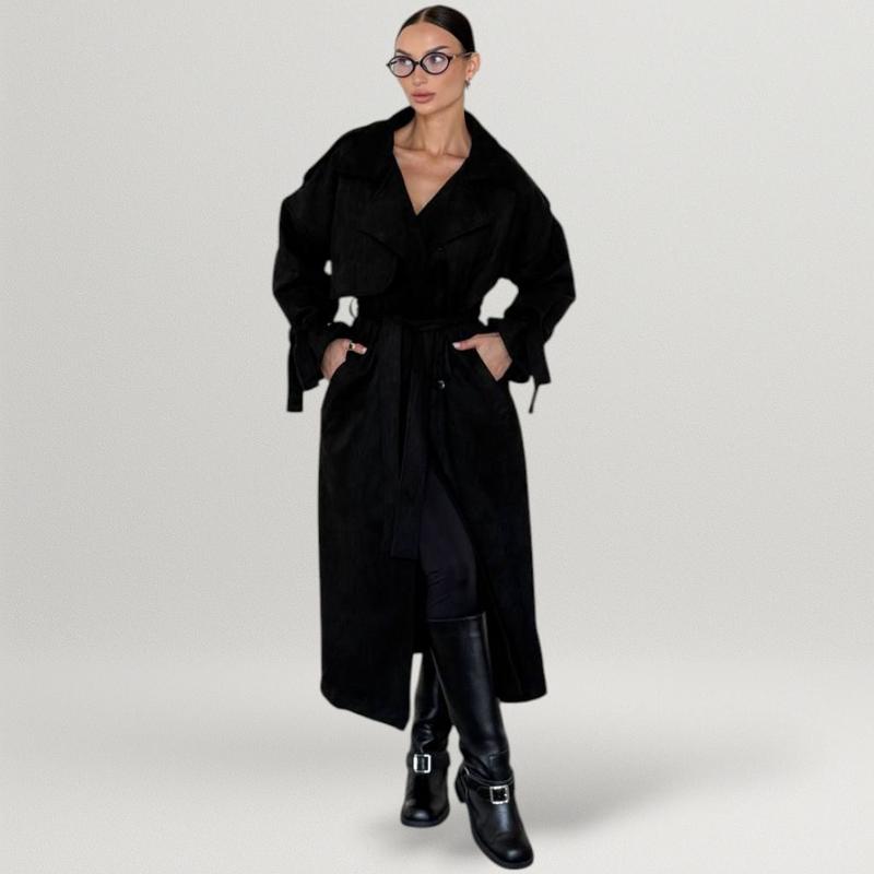 Тренч женский замшевый классический оверсайз двубортный с поясом повседневный стильный пла...