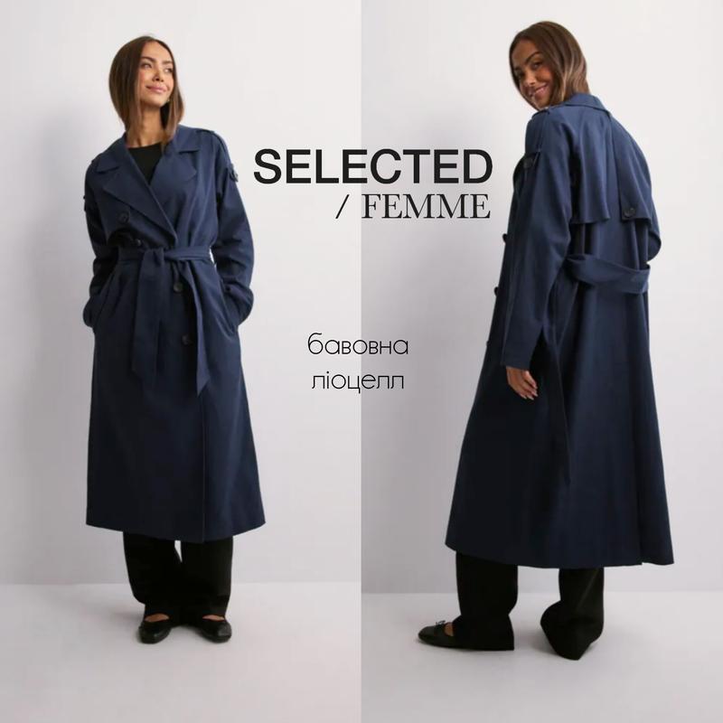 Selected femme длинный двубортный женский тренч из лиоцелла и хлопка