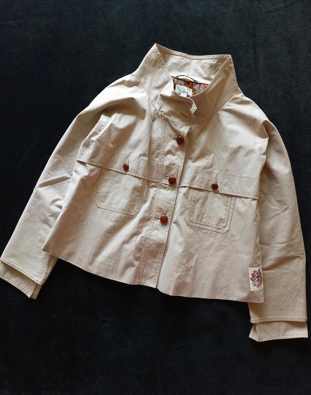 винтажный укороченный плащ тренч от бренда Ralph Lauren. свободного кроя, воротничок стойка, в мелкую клетку, накладные и боковые карманы, натуральная плотная ткань, деревянные пуговицы. рукав от воротничка 73см, полуобхват груди 62см, длина 60см, ширина внизу 75см. без дефектов