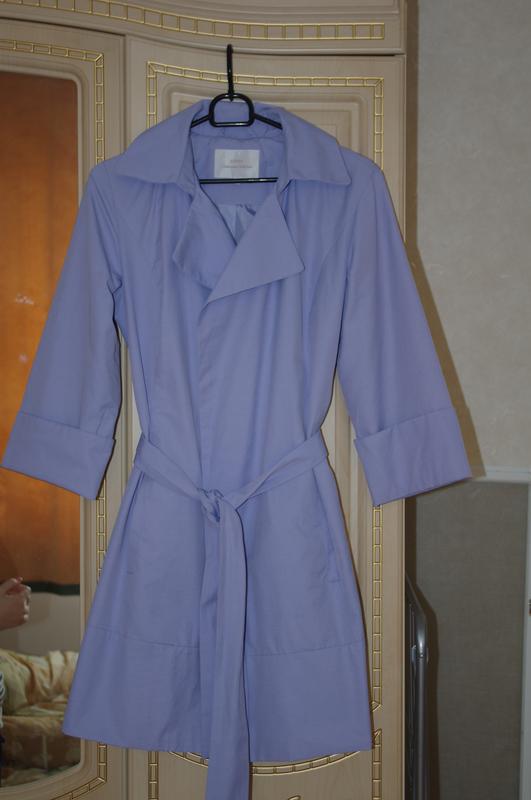 Красивейший плащ лавандового цвета. Абсолютно новый, но без бирки. Размер указан XS, но реально идет на S Плащ идёт на запАх, поэтому подойдет на любую грудь и талию. От плеча до плеча 41см