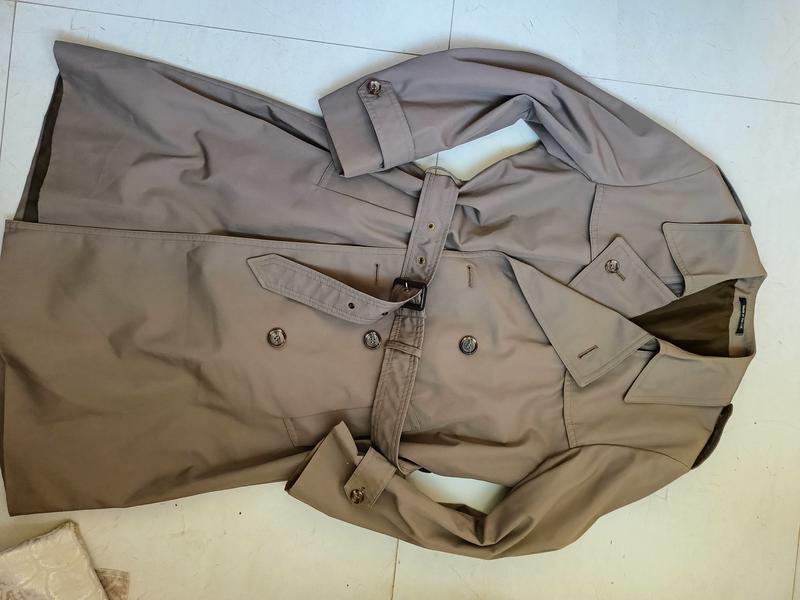 Современный, стильный плащ, тренч и со смесью хлопковой ткани. Цвет молочного шоколада. Идеально подходит для сезонных осенне/весенних холодных, ветреных, дождливых дней. С воротником, ветрозащитными клапанами, поясом-ремнем и погонами на плечах и рукавах. Без дефектов.