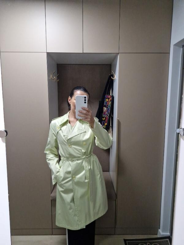 женский двубортный плащ салатового цвета