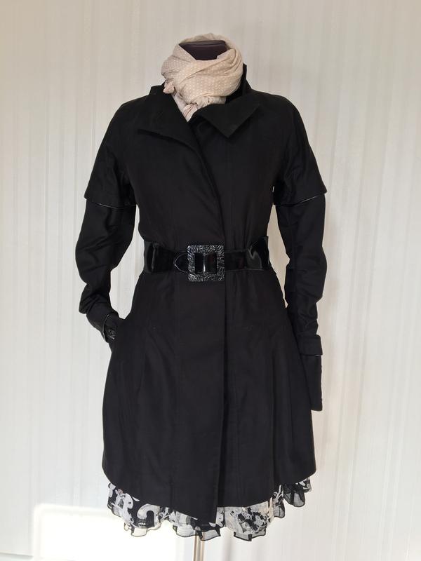 Очень красивый плащ......спереди на змейке и скрытыми кнопками,рукав отделан пуговицами,на спинке вышивка,пояс резинка и лаковая кожа. длина 85 см ПОГ 42 см ПОТ 42 см ПОБ 46 см Длина рукава от горловины 70 см.