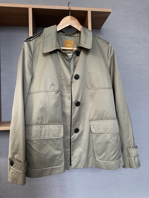 тренч Next розмір 10(s) стан відмінний колір оливковий (фото не передає колір ) плечі 42 пог 52 рукав 63 довжина 66
