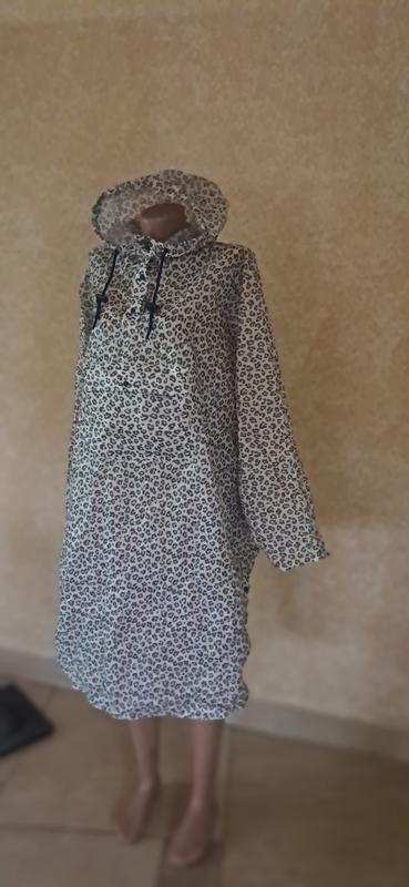 Сложный универсального размера дождевик. Есть карабин, за который можно прицепить к рюкзаку или сумке