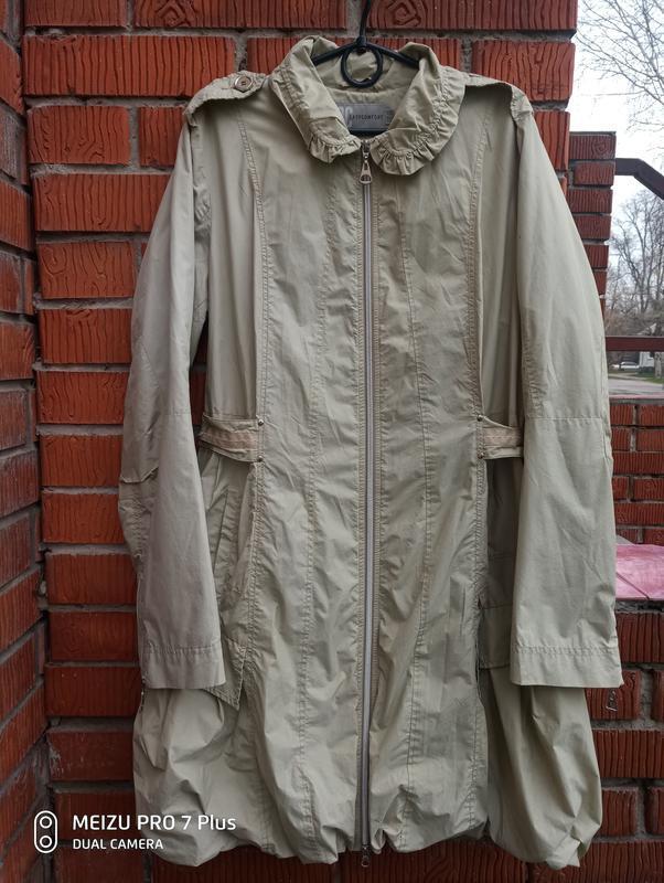 Очень интересный, практически новый плащ, фирмы Easy Comfort (Германия). Оригинальная, качественная и стильная вещь. Размер указан 42-44. Длина - 96 см Плечи - 42 см, Рукав - 66 см ПОГ - 55 см ПОТ - 50 см. (регулируется сзади ремешками как в большую сторону так и в меньшую) ПОБОДЫ-70+ см