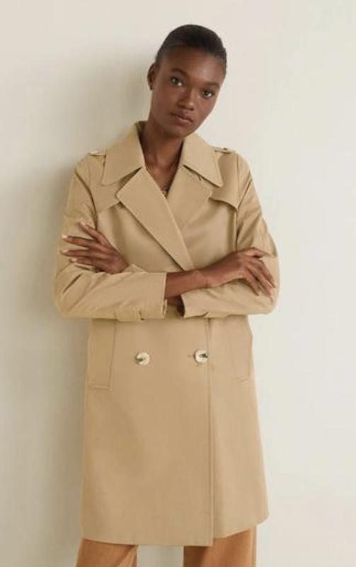 Плащ виконаний із текстилю. Модель прямого фасону. Деталі: комір з лацканами, застібка на гудзики, дві кишені, пояс. Склад: бавовна - 65%, поліестер - 24%, поліамід - 11%