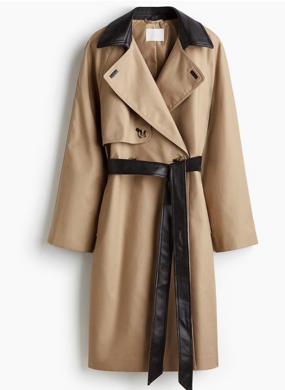 Тренч з бавовняної саржі з коміром та поясом-зав'язкою з тканини з покриттям. Двобортний спереду з клапаном на ґудзиках, вільною кокеткою ззаду та прорізними боковими кишенями. Довгі рукави реглан та одинарний розріз ззаду. На підкладці. Опис: Бежевий/Чорний, однотонний Розмір моделі: Зріст моделі 174 см/ та розмір M Розмір: Рукав: Довжина: 77,5 см (розмір M) Спинка: Довжина: 105 см (розмір M) Довжина: Довжина до коліна Довжина рукава: Довгий рукав Крос: Звичайний крій Комір: Лацкани з вирізом Стиль: Тренч, двобортний Стиль рукава: Рукав реглан Кількість: Одинарни доставка з Британії 12 днів , гарантовано доставляємо, перед відправкою заміри.