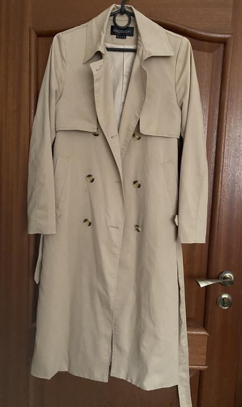 Стильний бежевий тренч плащ на розмір С-М, довжина міді, нижче колін, у відмінному стані, без дефектів.