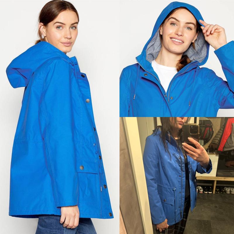 Стильная куртка- плащ в стиле парки от бренда Monterey. Качественный материал, красивый крой, имеет подкладку, регулируется на прямые, функционирующие карманы. Размер указан: 10, подходит лучше на S, или не крупную. Цвет: насыщено голубой