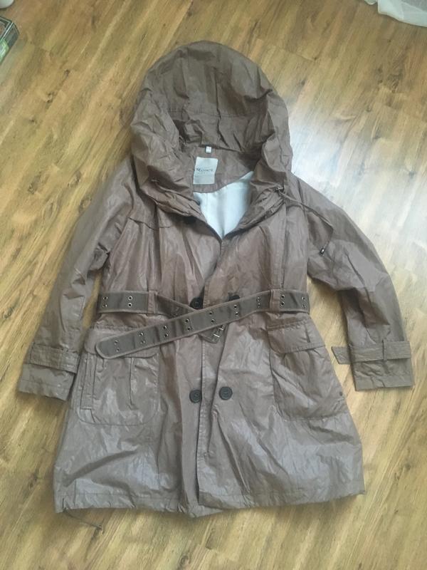 Красивый коричневый плащ. Воротник регулируется. Есть подкладка, пояс ,кармашки, низ можно тоже затягивать шнурочком. Длина 90см, длина рукава 63см, ПОгруди 54см, плечи 44 см.