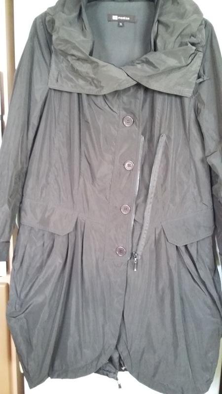 Предлагаю стильный оригинальный плащик от Monton размера XL на наш 48-50 болотного цвета очень интересного фасончика. Воротник выкладывпется в трех вариантах, может быть застегнут только на пуговицы, или на молнию также. Был выгулян пару раз, на меня маловат... Фото не передают неординарность цвета и фасона...