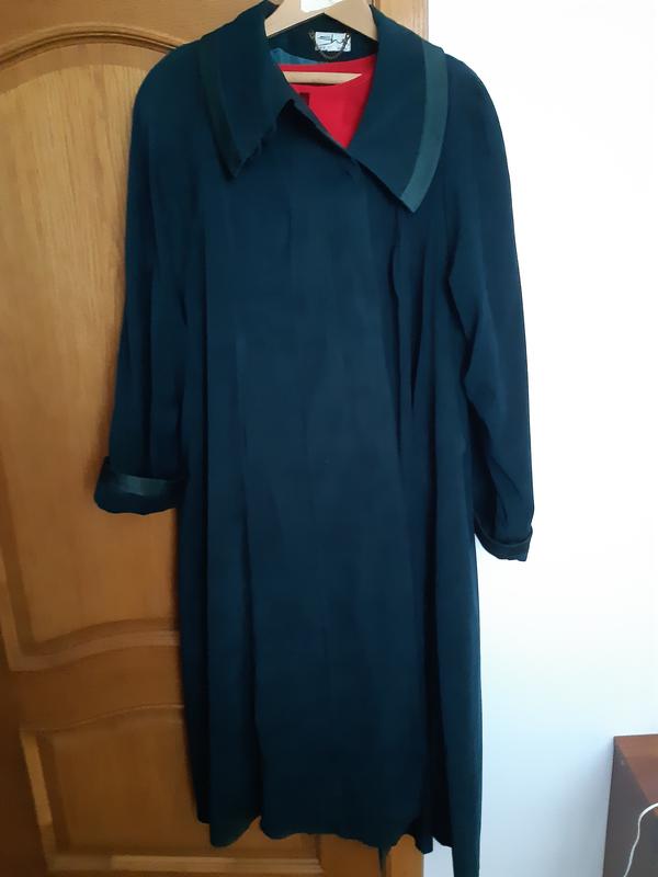 Гарний плащ на високу статну пані. Колір ізумрудний, дуже красивий. Квмера не передає. Тканина схожа на замш.