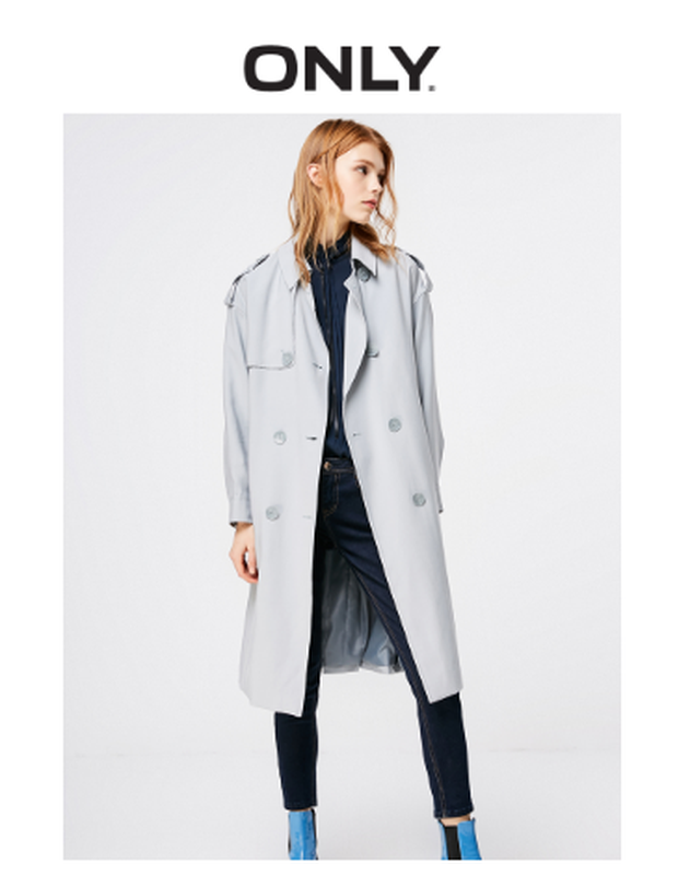 Стильний тренч бренду ONLY сірого з блакитним відтінком кольору (ice blue). Двобортний, на паску. Гарний склад тканини, симпатичні гудзики, погони, клапан. Розмір на бірці 170/88А (L). Параметри: плечі 52 см, бюст 96 см, талія 100 см, довжина 105 см. Наш розмір 46-48.