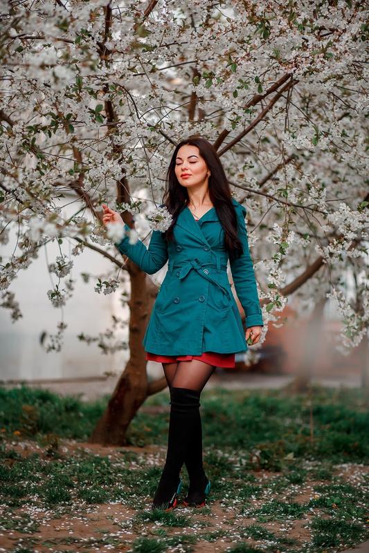 Плащ изумрудного цвета. Модель приталеная с поясом идеально подчёркивает талию. Застёжка двухоборотная,прорезные карманы .