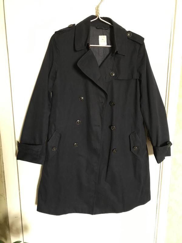Очень качественный синий тренч, состояние отличное, есть пояс, ткань плотная, размер m.